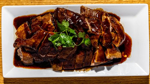 The tender duck is carefully deboned and sliced so it can take that gravy in for that extra flavor and silky texture.